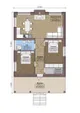 F-1133 - План одноэтажного дома 6 на 12, площадью 70 м² с террасой и 2 спальнями